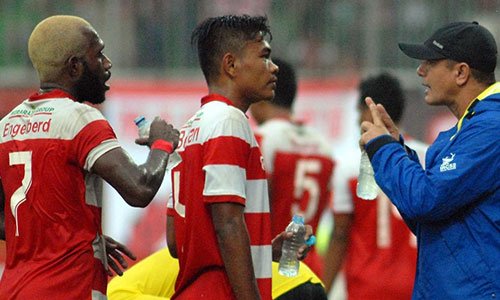 SelengkapnyaDi babak kedua, Madura United terus meningkatkan tempo permainan, bahkan Gomes memainkan tiga striker sekaligus dengan memasukkan Patrick Wanggai d...